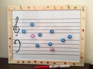 マグネットで音符の勉強ができるものを作りました。